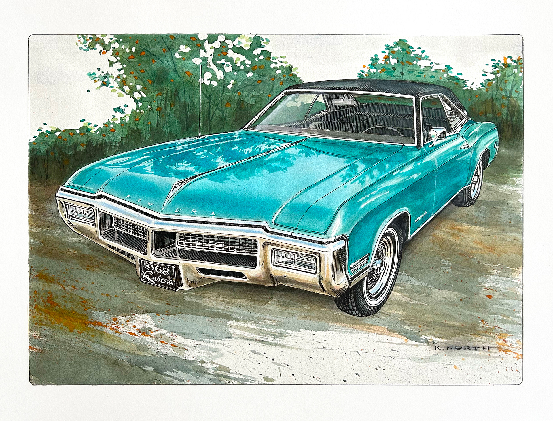 1968 Buick Riviera - Pen & Ink and Watercolour - 34 cm x 24 cm